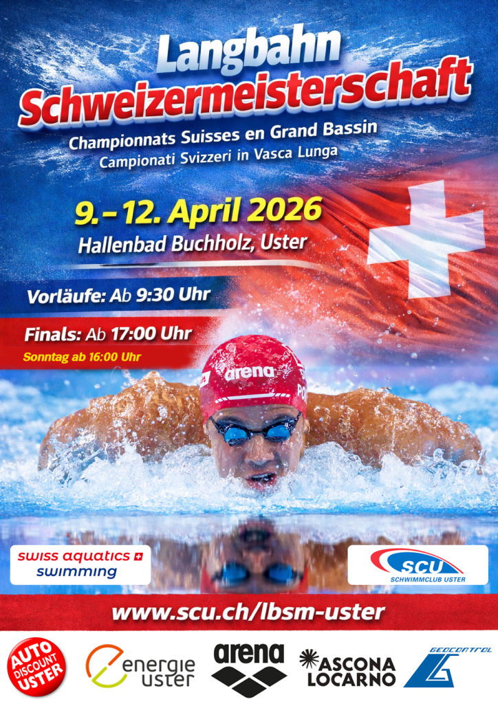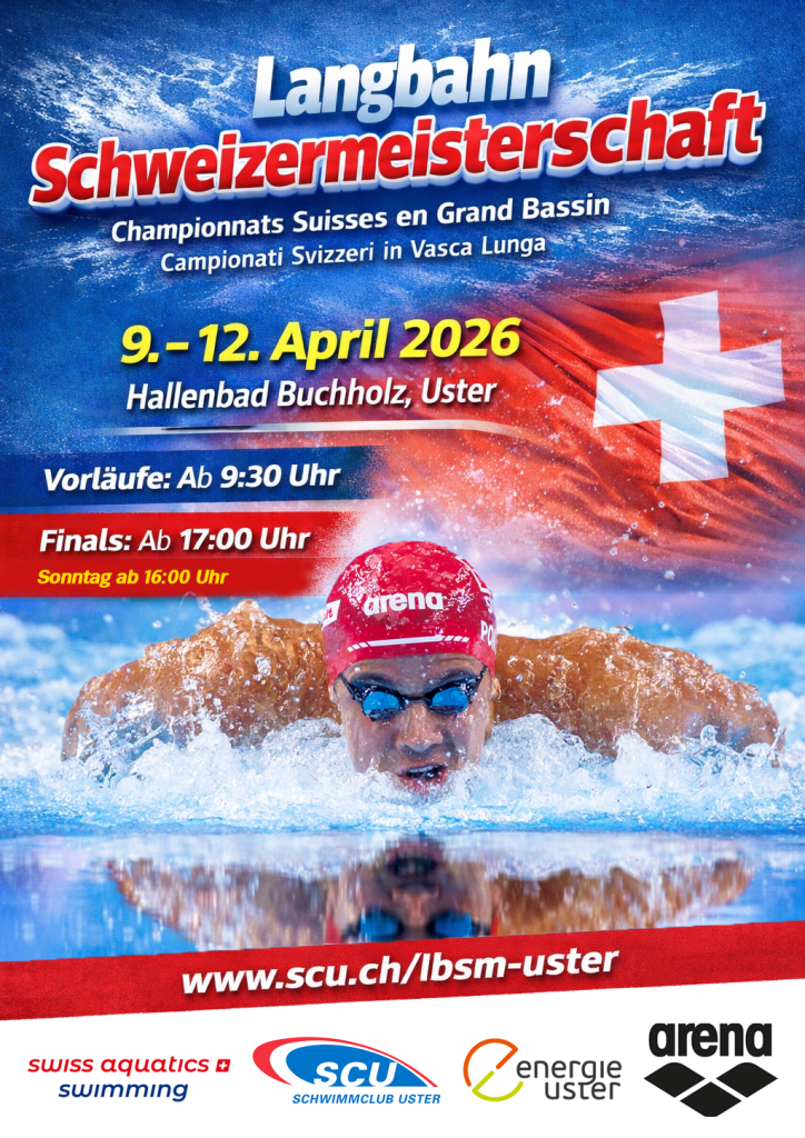 Vom 09. bis 12. April 2026 wird das Hallenbad Buchholz in Uster zum Schauplatz der Langbahn-Schweizermeisterschaft – dem nationalen Höhepunkt der Schwimmsaison. Freut euch auf hochklassigen Schwimmsport und erlebt live, wie die besten Athletinnen und Athleten der Schweiz um nationale Titel kämpfen. Spannung, Emotionen und Spitzenleistungen sind garantiert!